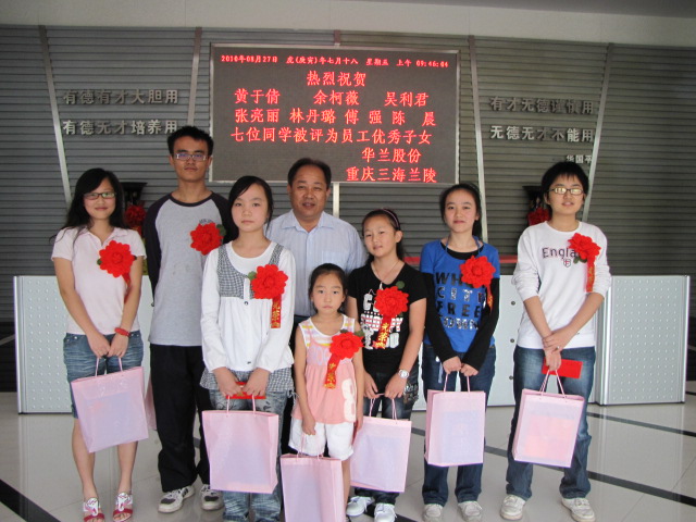 華蘭一直有著一份自己的堅(jiān)持,堅(jiān)持以員工為本,堅(jiān)信員工就是華蘭的力量,可以戰(zhàn)勝一切困難,堅(jiān)信“有知識(shí)才有出路”。為此,公司決定給予辛勤員工更多的回報(bào),鼓勵(lì)所有員工子女熱愛學(xué)習(xí),為體現(xiàn)公司“尊重知識(shí),尊重人才”的理念,從2005年起,公司每年支出一筆獎(jiǎng)學(xué)金,今年8月27日,在重慶市涪陵三海蘭陵有限公司行政樓會(huì)議室,舉行了2010年上半年度員工優(yōu)秀子女表彰大會(huì)。