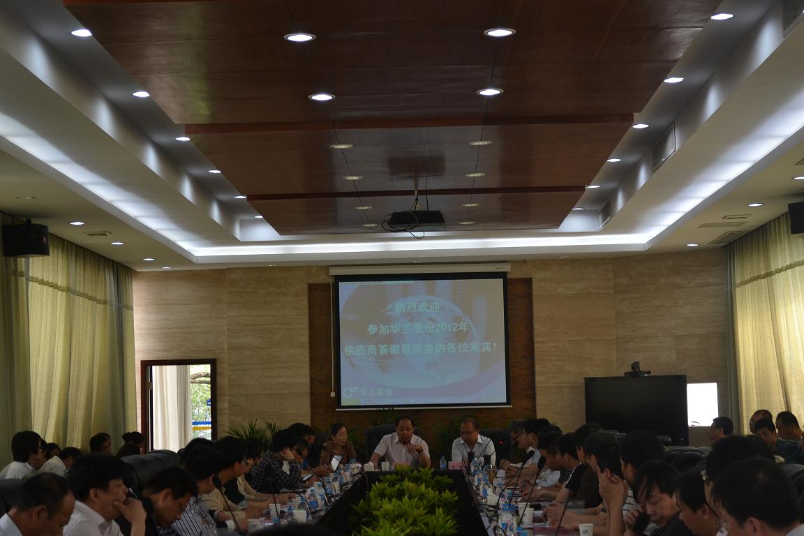 5月5日,華蘭股份2012年度供應(yīng)商答謝懇談會(huì)在公司智慧源隆重召開。公司生產(chǎn)部、技術(shù)部、質(zhì)量部、采購(gòu)部、財(cái)務(wù)部等相關(guān)職能部門領(lǐng)導(dǎo),和來(lái)自全國(guó)各地的56位供應(yīng)商代表出席了會(huì)議。