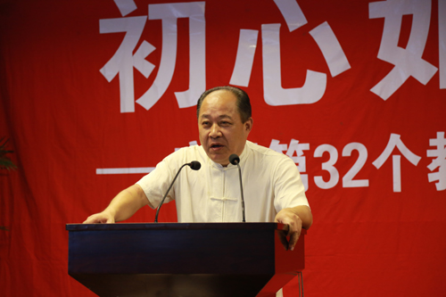 華董事長首先指出,教育是一件非常重要的事情,因為會伴隨每個人的一生,對在教育一線辛勤付出的老師們表達了誠摯的感謝與節日的祝賀。接著,從社會需求的角度,給老師們提出兩點期望:一、進一步加強學生的品德素質教育;二、注重提高學生的自學能力。最后,華國平先生真誠祝愿一中學校好、學生優、師資專,也祝江陰教育越辦越好。華老先生儒雅的風度、真誠的發言贏得了領導、老師們一陣陣熱烈的掌聲。