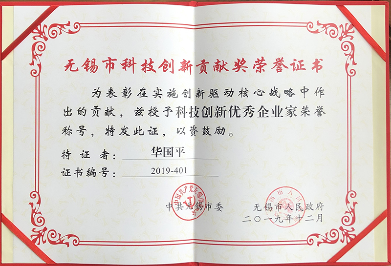 2019年12月20日,無(wú)錫召開全市產(chǎn)業(yè)強(qiáng)市貢獻(xiàn)獎(jiǎng)、科技創(chuàng)新貢獻(xiàn)獎(jiǎng)?lì)C獎(jiǎng)大會(huì),對(duì)在推動(dòng)創(chuàng)新驅(qū)動(dòng)、產(chǎn)業(yè)強(qiáng)市工作中做出重要貢獻(xiàn)的相關(guān)單位和個(gè)人予以表彰。華蘭股份董事長(zhǎng)華國(guó)平先生獲評(píng)2019年度“無(wú)錫市科技創(chuàng)新優(yōu)秀企業(yè)家”榮譽(yù)稱號(hào)。